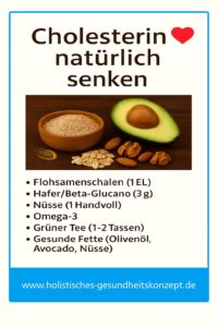 Schon 60–80 g Haferflocken, 1–2 Tassen grüner Tee und 1–2 EL Olivenöl täglich können helfen, Cholesterin natürlich zu regulieren.Avocado und Nüsse ergänzen die gesunden Fette – gemeinsam unterstützen sie Herz, Stoffwechsel und Verdauung