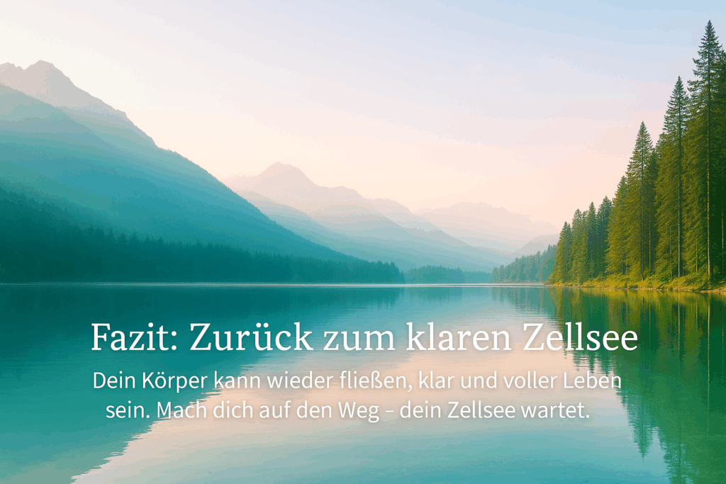 Mit basischer Ernährung, gezielter Entsäuerung und liebevoller Selbstfürsorge bringst du dein Zellwasser wieder zum Fließen. Je klarer dein innerer Zellsee, desto besser funktioniert dein Stoffwechsel, desto stärker sind deine Selbstheilungskräfte – und desto mehr Lebensfreude strahlt dein Körper aus.